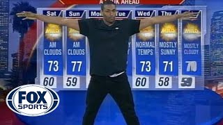 Metta World Peace is a naturally funny/weird dude, so of course having him tell the weather is instantly YouTube-worthy material. Only World Peace would find it reasonable to attempt to do yoga stretches while telling the temperatures.