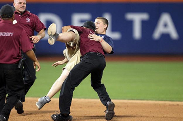 They're talking about him because, during the fifth inning of the game, Masone jumped onto the field at Citi Field, ran through the infield, and got tackled by a security guard before being escorted off the field. And why did he pull such a stupid stunt? Well, he did it because he got more than 3,000 retweets when he sent this tweet out last night: