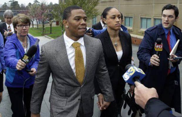 However, now it sounds like Rice might be getting off relatively easy. Earlier today, Rice appeared in court in Mays Landing, N.J. with Palmer—who is now his wife—by his side and pleaded not guilty to a third-degree aggravated assault charge. Further, he applied for a pretrial intervention program that would help him avoid prosecution and give him no jail time. Instead, if he qualifies for the program, he will be forced to undergo anger management but he won't be subjected to any additional penalties.