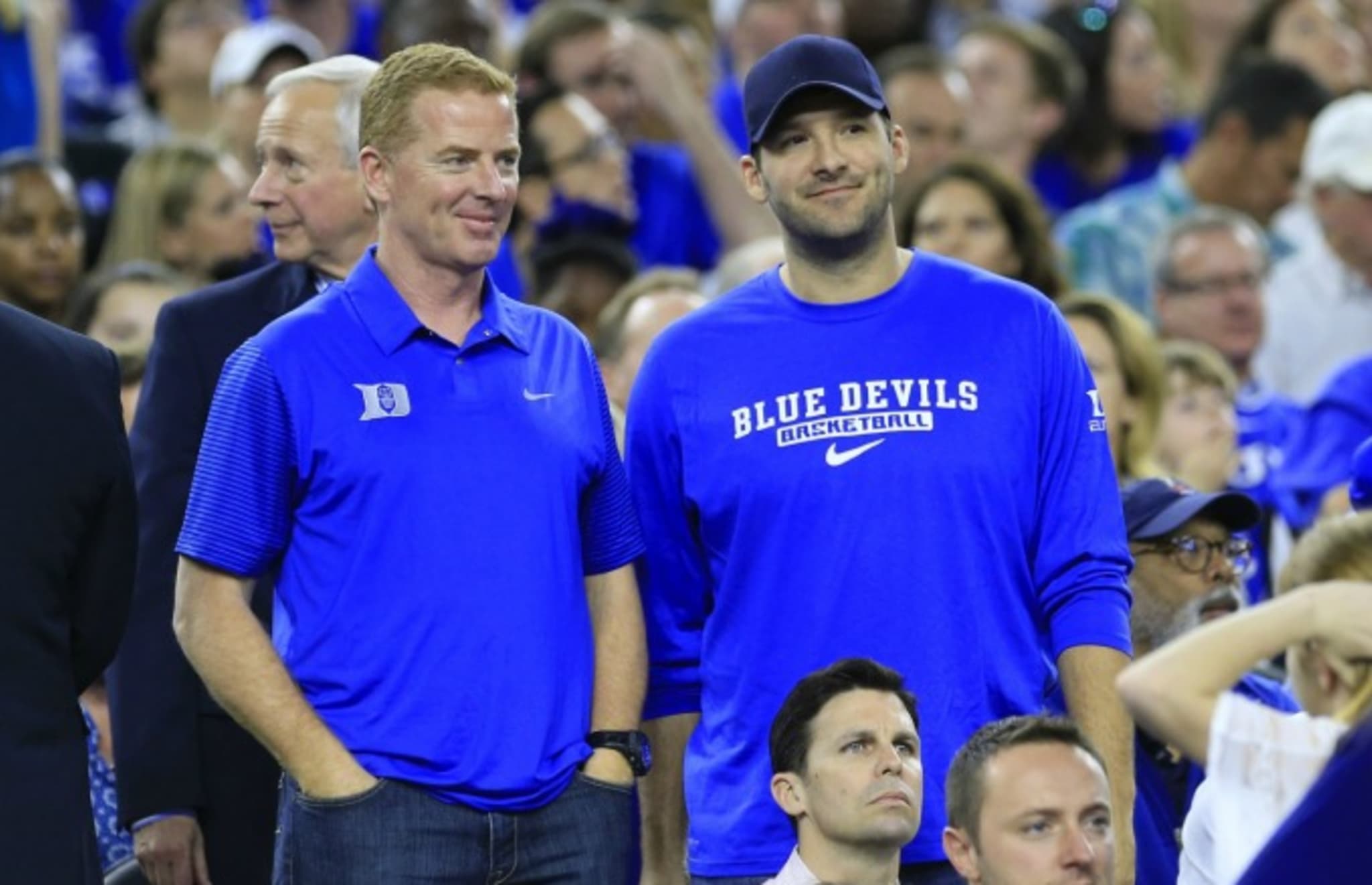 When Duke beat Wisconsin last night to win the NCAA National Championship, longtime Blue Devils fan Tony Romo was probably ecstatic. He was thrilled that his favorite college basketball team won and thrilled that people couldn't blame him for Duke not winning the title anymore. But he was also likely a little bit nervous. Because back in 2014, Romo promised Duke star Jahlil Okafor that he would win a Super Bowl with the Cowboys as soon as Duke won a title: