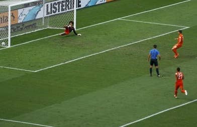 Was it a foul? Debatable. But after some dicey tackling in the box all match long by Mexico that had gone unpunished, El Tri were really playing with fire. They looked to Ochoa to bail them out one last time as Dutch substitute Klaas Jan Huntelaar stepped up to the spot; however, they would soon be disappointed: