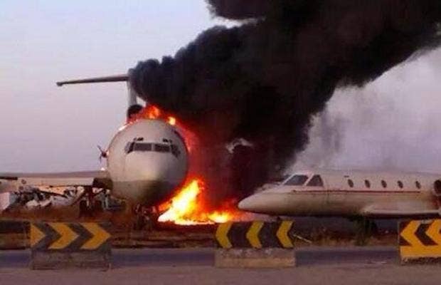 Two rival Libyan militias have been fighting with each other since Sunday for control of the Tripoli Airport. This afternoon a plane was hit with a rocket intended for a control tower (which was also hit eventually). Luckily, no one was in the plane at the time, but that hasn't stopped casualties from racking up. Nine people have died and another 25 have been wounded in the battle, according to CNN.