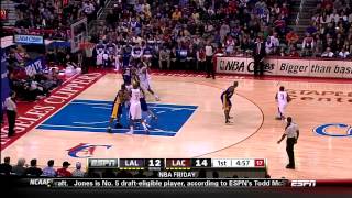 Kobe Bryant may think the Lakers roster is "old as shit" but don't group him with those guys. Thanks to some fresh knees out of Germany a changed diet, Kobe has put up some of the best numbers of his career while exhibiting some hops reminiscent of his prime years. Last night, Bryant showed that he still got some hops in that 34-year-old body and flushed down a fastbreak dunk on Chris Paul after stealing it from the Clippers point guard.