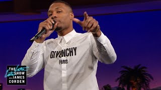 The Late Late Show picked a great day to book Portland Trail Blazers star point guard Damian Lillard. During his appearance alongside actor Taron Egerton, Lillard was reminded by host James Corden of his lack of a submission for this week's edition of #4BarFriday, a challenge issued by Dame for anyone to spit their best four-bar rap every week.