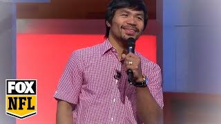 With the NFL regular season just three days away, Manny Pacquiao is just as exciting for some professional football as we are. But the difference between us and Pacquiao is that while we impatiently count down the days, Pac-Man is making a tribute song to sing on live TV. Obviously, this isn't the first time we have heard Pacquiao break out those, um, unique vocals, so you know what you're getting yourself into once you press that play button. Enjoy?