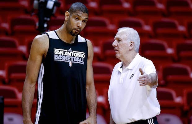 If the San Antonio Spurs defeat the Miami Heat and win the NBA title on Sunday, it would be the perfect, storybook sendoff for both Tim Duncan and Gregg Popovich. But apparently, both guys don't believe in all that. According to ESPN's Marc Stein, Duncan, who has until June 24 to decide whether or not he will pick up his $10.3 million player option, has the Spurs at this moment, "quietly operating under the assumption" that the 38-year-old will not be calling it quits at the end of this season's NBA Finals.