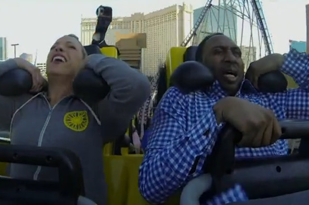 Stephen A. hopped onboard the Big Apple Coaster in Las Vegas. Judging from his expressions, he might've crapped himself.