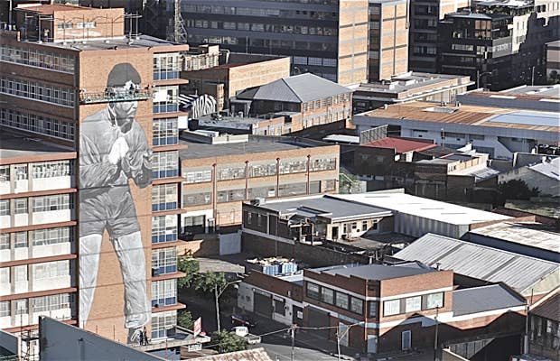 Street art tribute pieces for Nelson Mandela have been popping up all over the world since his death, and they are all pretty impressive, but the fact that this Freddy Sam mural is 10 stories high gives him a bit of an edge. The South African artist was commissioned by the Maboneng precinct to create a piece of art that they could give to the people of South Africa after they lost their heart. The mural features a younger Mandela in a boxing stance, modeled after an iconic image of the leader taken by Bob Gosani. A king-sized mural for a man who, for many, was larger than life.