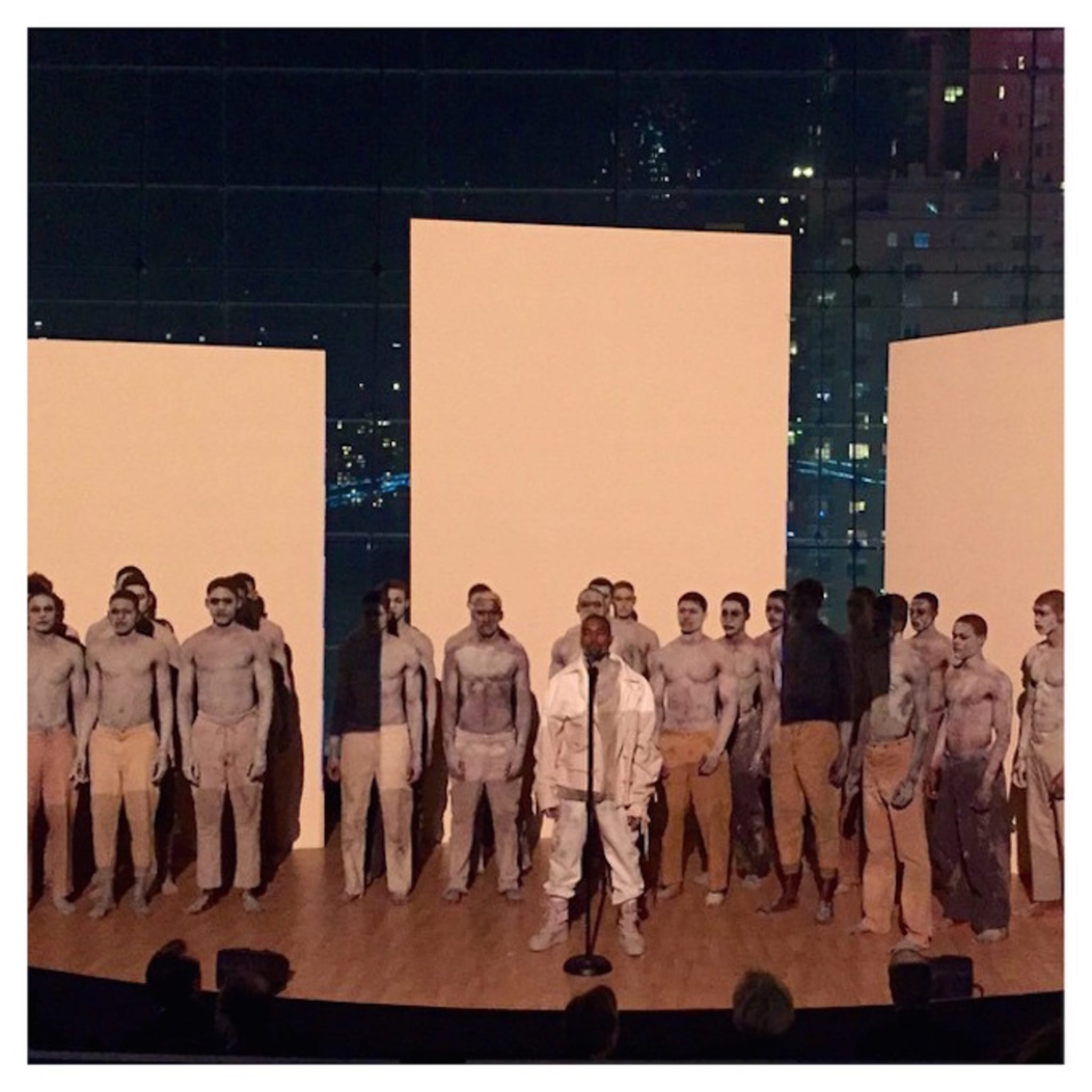During the Gala, Kanye took to the stage to perform and had a group of shirtless models flank the stage, styled like African warriors with khaki pants and chalky mud all over their bodies. One of the models shared a photo on Instagram saying that their job was to stand their and be stoic, but that it was hard not to dance during the performance.