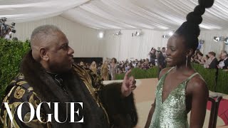 Lupita Nyong'o turned heads during May 2's Met Gala when she arrived in a green sequin Calvin Klein dress and towering hairstyle. While walking the red carpet, the actress stopped to chat with Vogue correspondent Andre Leon Talley about the vision behind her look.