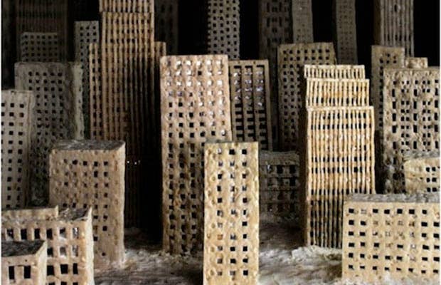 The artist's project "Decor" features a small city built of bread, photographed daily throughout 6 months of decomposition and accumulation of mold. Although her bread city and our concrete metropolises do not share a common building material, the metaphor highlights the possibility of the two urban models meeting a similar process of decay. The mold may be disturbing to look at, but it is up to our imaginations to render images of what else may be overwhelming our architectural environment in the future.