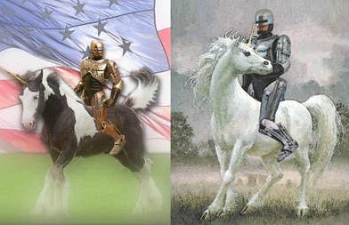 The world will be safe, prayers have been answered, Robocop on a Unicorn is here. Thanks Tim Doyle, you're quite the guy. Hit the thumbs and try not to break a rib laughing. [Design]