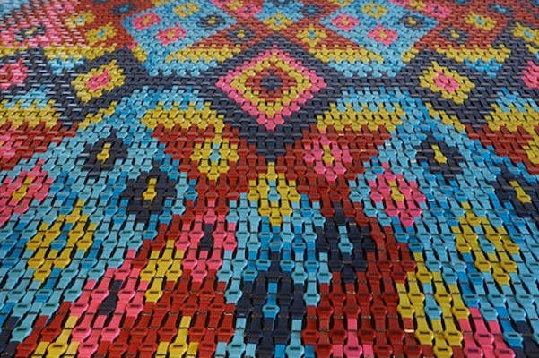 Artist Heidi Voet created a carpet made out of 4,000 watches that measures 310×660 cm. The alarms were synchronized to chime in unison during a day, creating what she describes as a symphony of digital chimes. However, over time they inevitably fall out of sync and sound like a band out of tune. Her purpose is to show that the procession of time is constant, however as it marches on incessantly the result will be chaos and things falling apart.