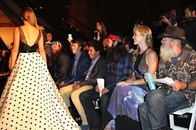 Willie, Si, and JepRobertson took a break from playing pranks on each and the rest of the fun that goes down on Duck Dynasty, and took a trip up North to New York Fashion Week—beards, bandannas, camo, and all. No, they weren't at a Woolrich presentation, the Robertson clan has a fashion star in their family, and it's not any of the dudes.
