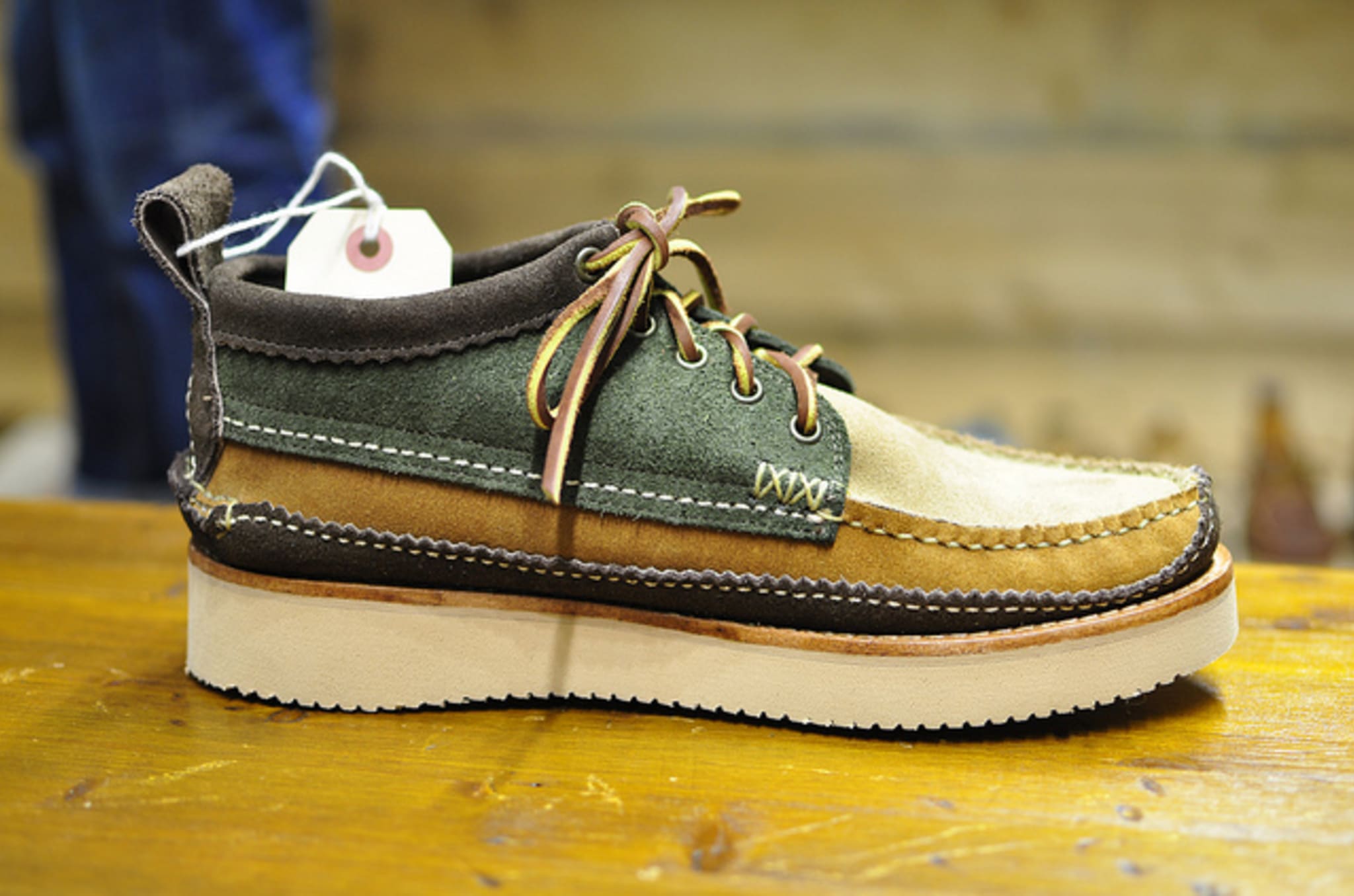 This Yuketen preview shot by Tres Bien Shop comes from Pitti Uomo in Florence, Italy last week. The styles range from must-haves, to completely out of the ordinary. You've got your vibram-soled Maine Guide shoe making another strong appearance, but this time with snakeskin or multi-colored suede, along with a new variations of a couple of their staple shoes. Stay on the lookout for more pics, but it will be a while before these hit stores. Thanks again, Tres Bien! [Flickr]