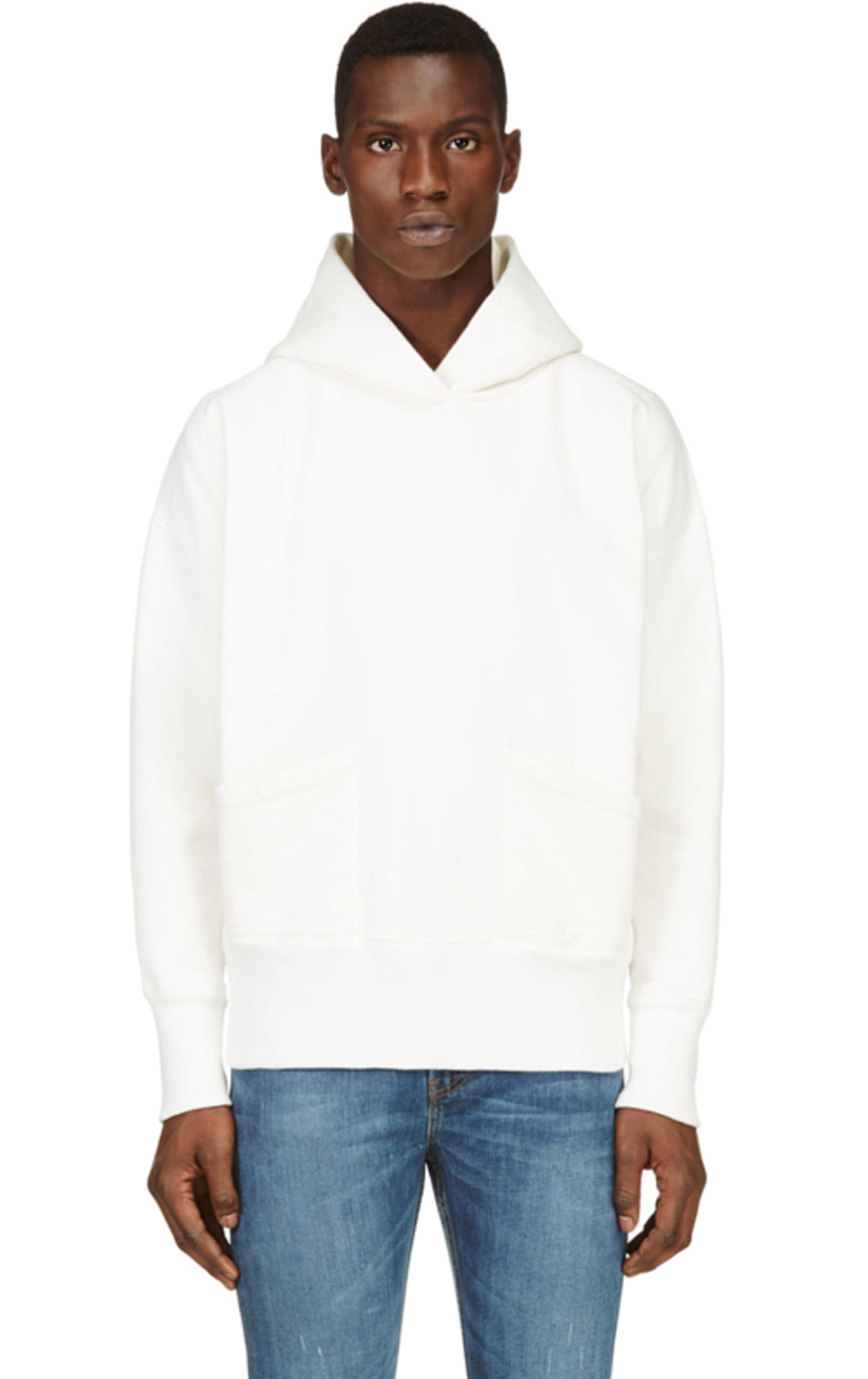 Hoodies are the de facto fall outerwear. While we love side zips and any other bells and whistles to differentiate some high-end designer shit from your typical "check out all my student loans" number, not every joint can be so flush with features. Sometimes you need Levi's Vintage Clothing to swoop in with a tiny tweak that won't scare your mother when you show her your new jawnz. So, LVC came through with a whiteout hoodie that has two exterior patch pockets and no hood cinch. Like, it's different, but it's not different, jah feel? Only problem is that super bright white. You need to keep some fucking Clorox on deck to keep this thing in remotely good condition, especially if you're like me. I eat some variation of pizza or pasta about ten times a week. This hoodie would not make it out alive in the midst of my carb-heavy, marinara-laden diet. If you wear a bright white anything, it attracts messes and stains roughly 14,000% more than any other color. I think there's a study somewhere that proves that. Either change your diet or don't buy this hoodie. Your call.