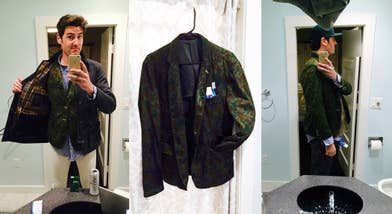 He bought this this garbage, very bright camo blazer while drunk a while back and it just sat unworn, taunting him. But he wasn't going to take it anymore, so he hit the craft store and bought some dye in an effort to make it a much more tolerable shade of camo. He removed the awful shoulder pads and got to work on this shit. If you follow the thread as he updates it, it's pretty great. He fully admits that the sleeves are way too fucking short and the stitching also didn't take the dye all that well, staying the bright neon green/yellow it came with because, for weird some reason, almost all stitching does that. I don't get it. There's probably some actual rationale behind it, but whatever. All you need to know is that the end result actually looks pretty good! Decent work all around, my good man.