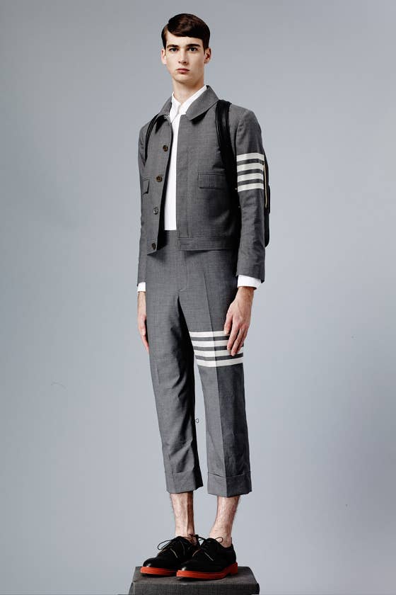 I will always have a soft spot in my heart for Thom Browne even though I'll never be able to afford and/or wear it. Everything TB does always qualifies as #GOALS for me. In other words, it's purely aspirational. It's sort of like art, ya know? Like, you peep some really fucking fly ass art and then want to try it yourself, only to realize you used up all your artistic ability in elementary school art class, but you're still really into it. This is clearly not Thom's first rodeo and while there aren't any elephant heads here, we have more than enough replacements, like crocheted flowers, padded blazers that make you look swoll as fuck while still wearing tiny pants and enough candy cane striping to get you through the holiday season. Of course, the suiting is still on point as usual. I'm really just trying to modify my diet to fit into this gear and catch it when the sample sale hits next year.