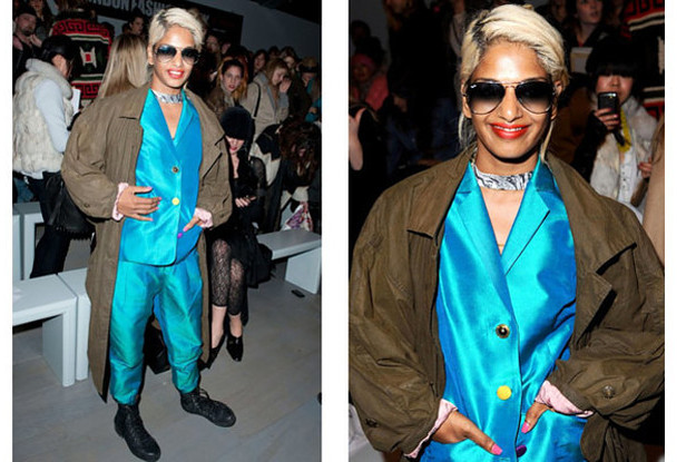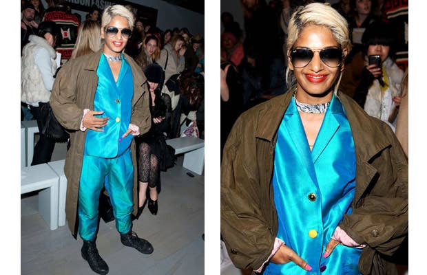 It's the middle of London Fashion Week and ladies such as Amber Rose and Alexa Chung are donning their most stylish and sexy ensembles, but What The F*ck You Wearing M.I.A.?!?!??! We know you like to stay on that "I don't follow trends" tip but a raw silk pantsuit tucked into combat boots and your grown-out roots and fried faux-Aryan hair and good god woman, is that a CHOKER? What is going on? Look it, we know you're a mom and hell, respect, but get your affluent baby daddy to spring for a nanny so you can get a little you time and fix *waves hands* all this, 'kay? Kill it all with fire. Start with that homeless dude trench. We can smell the pee waft from here. Get back to us when you look like this again. Thxbai.