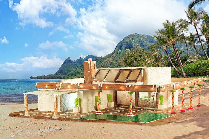 Housing options include a "modern home," a swanky estate made from gluten-free gingerbread that comes with "priceless chocolate drip art" and a "sugar-glass pool." You can also choose to live in a "rustic cabin" or a "cozy camper," also made from gingerbread, candies, and all things delicious.