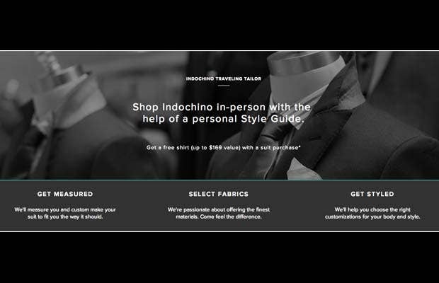 Since 2007, Indochino has been providing affordable custom suits for dudes who want more than just an off-the-rack fit. Simply give your measurements through its online ordering system and you’ll get a suit that fits like a glove mailed to your door.If you’re one of those guys who don't feel comfortable shopping online and prefer the in-store experience, Indochino’s Traveling Tailor is for you.